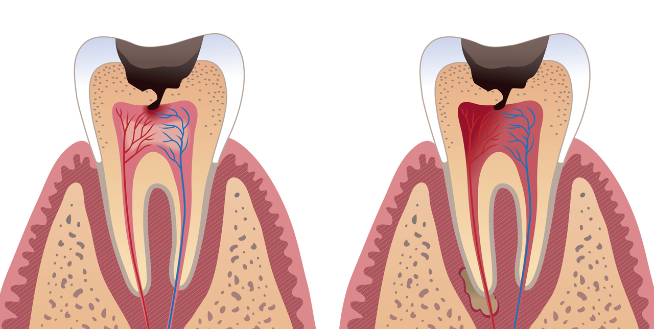 Root canal treatment is needed when the blood or nerve supply of the tooth is infected through decay or injury. If the pulp becomes infected, the infection may spread through the root canal system of the tooth. The aim of the treatment is to remove all infection from the root canal. The root is then cleaned and filled to prevent any further infection. Root canal treatment is a skilled and time-consuming procedure. Most courses of treatment will involve two or more visits to your dentist.